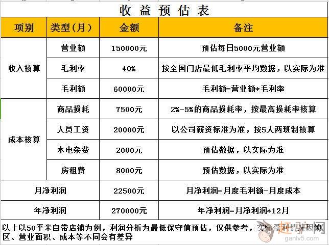 50㎡社区门店、房租、水费、电费、杂费,每年5万元左右;帮手一人,一年工资4万元左右,正常损耗约10%,按收购价计约4万元,税收约2万元。日均毛利2000元,每年72万元,扣出各种成本(不含老板工资),纯利润50万元。